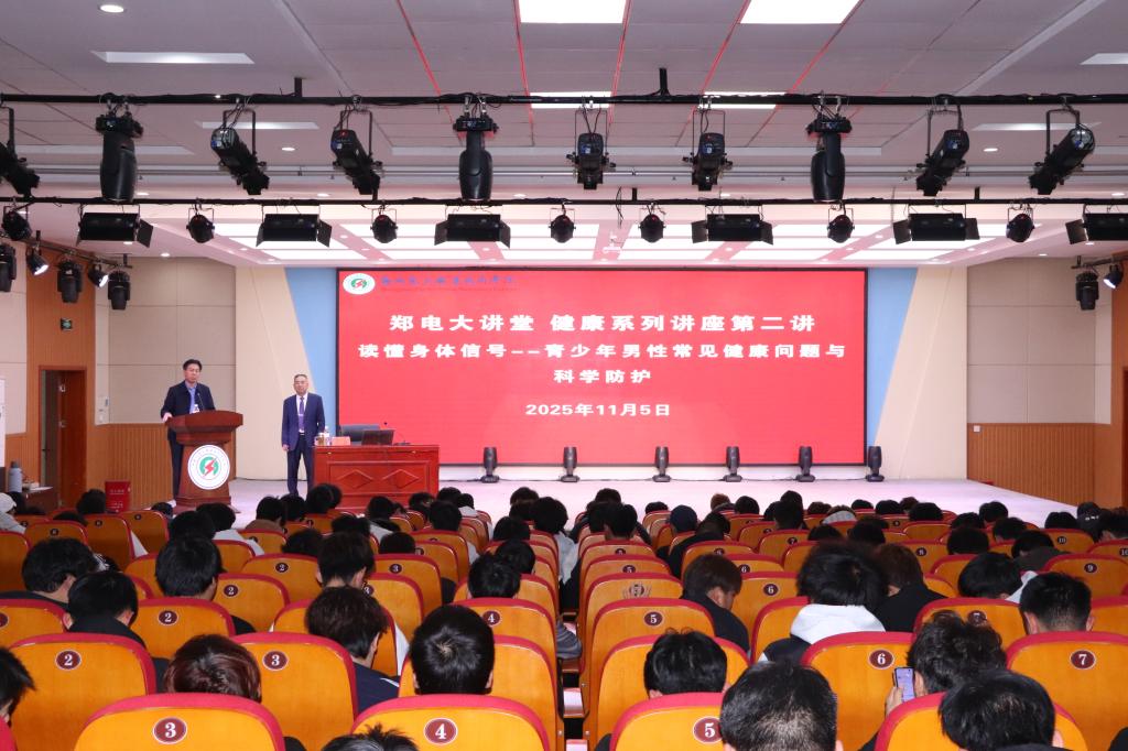 11月5日,太阳成tyc7111cc郑电大讲堂健康系列讲座第二讲在学校报告厅开讲,特邀郑州大学第一附属医院男科主任王瑞教授作青少年男性常见健康问题与科学防护讲座,讲座由校党委副书记杨松林主持。