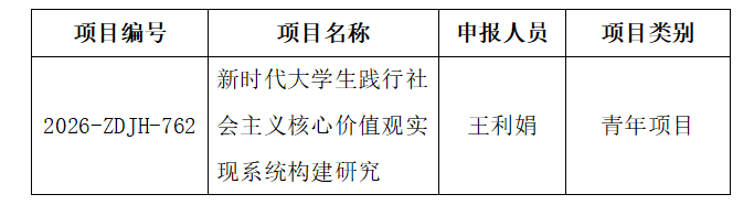 根据河南省教育厅公布的《2026年度河南省高校人文社会科学研究一般项目立项计划的通知》(教社语〔2025〕147 号),太阳成tyc7111cc王利娟教师的科研项目获准立项。