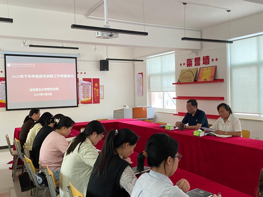 9月8日,马克思主义学院在会议室召开2025年下半年统战与宗教工作专题会议。学院领导班子成员、全体教师参加会议。会议由学院党支部书记姬迎喜主持。