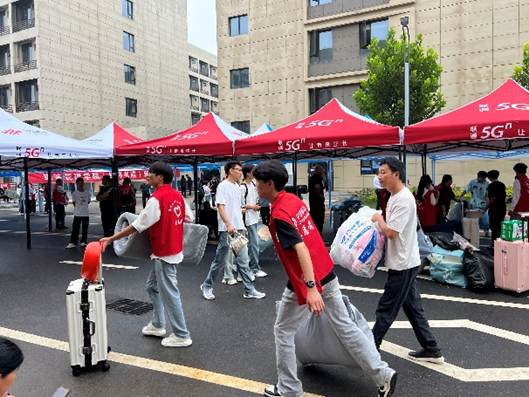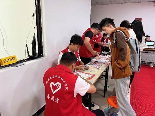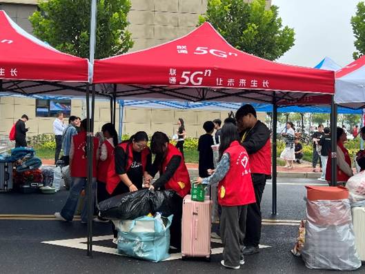 在老师们的指导下,志愿者们迅速进入角色。他们分工明确,配合默契:有的撑着伞在路口迎接,有的引导新生办理手续,有的帮忙搬运行李。雨幕中,那一抹抹志愿色彩,成为校园里最动人的风景线。