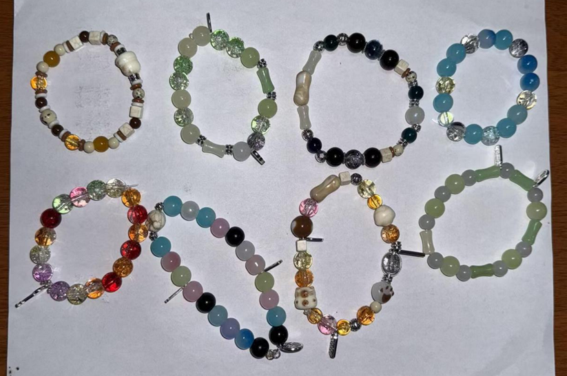 在随后的分享环节,一条条手串被赋予了独特的情感叙事。有同学以蓝白珠串喻意心境从纷扰归于平静;亦有同学以“中心大珠环绕小珠”的设计,表达在关怀他人时不忘守护自我的觉察;还有同学分享,当全神贯注将细线穿过微小的珠孔时,瞬间的成就感让烦忧悄然消散。这些真挚的讲述,使手串不仅是腕间饰品,更成为情绪的载体与成长的见证。